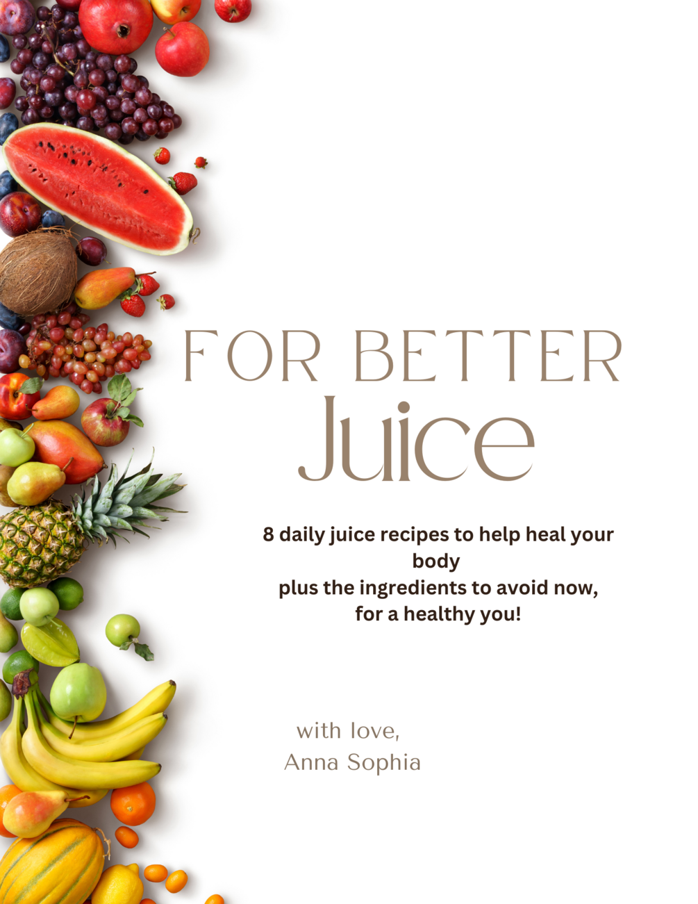 For Better Juice ebook provides you with 8 delicious juice recipes, each crafted to help improve your health! From inflammation to digestion it’s time to take our health back!